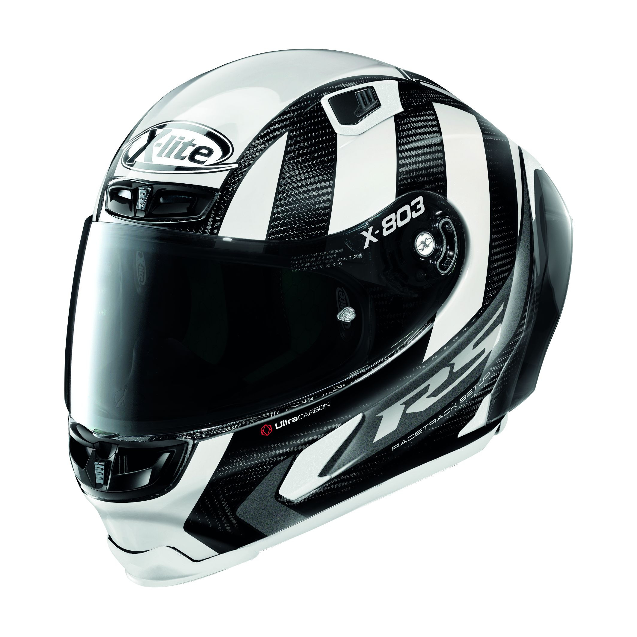 Mit dem X-803 RS Ultra Carbon bringt X-lite MotoGP-Technologie auf die Straße und zeigt zugleich, was bei Rennsport-Helmen der Oberklasse möglich ist. Das exklusive Racetrack Setup (RS) beinhaltet u. a. ein getöntes Visier und den Racetrack Aerodynamic Spoiler (RAS). Zudem besitzt jeder X-803 das Nolan Emergency Release System (NERS) für mehr Sicherheit durch schnelles Entfernen der Wangenpolster im Falle eines Sturzes. Ein weiteres innovatives Feature ist das Liner Positioning Control-System (LPC). Mit Hilfe eines leicht zu bedienenden Einstellbandes kann die Innenausstattung und damit die Helmposition des X-803 RS in der Höhe individuell an die Kopfform des Trägers angepasst werden.